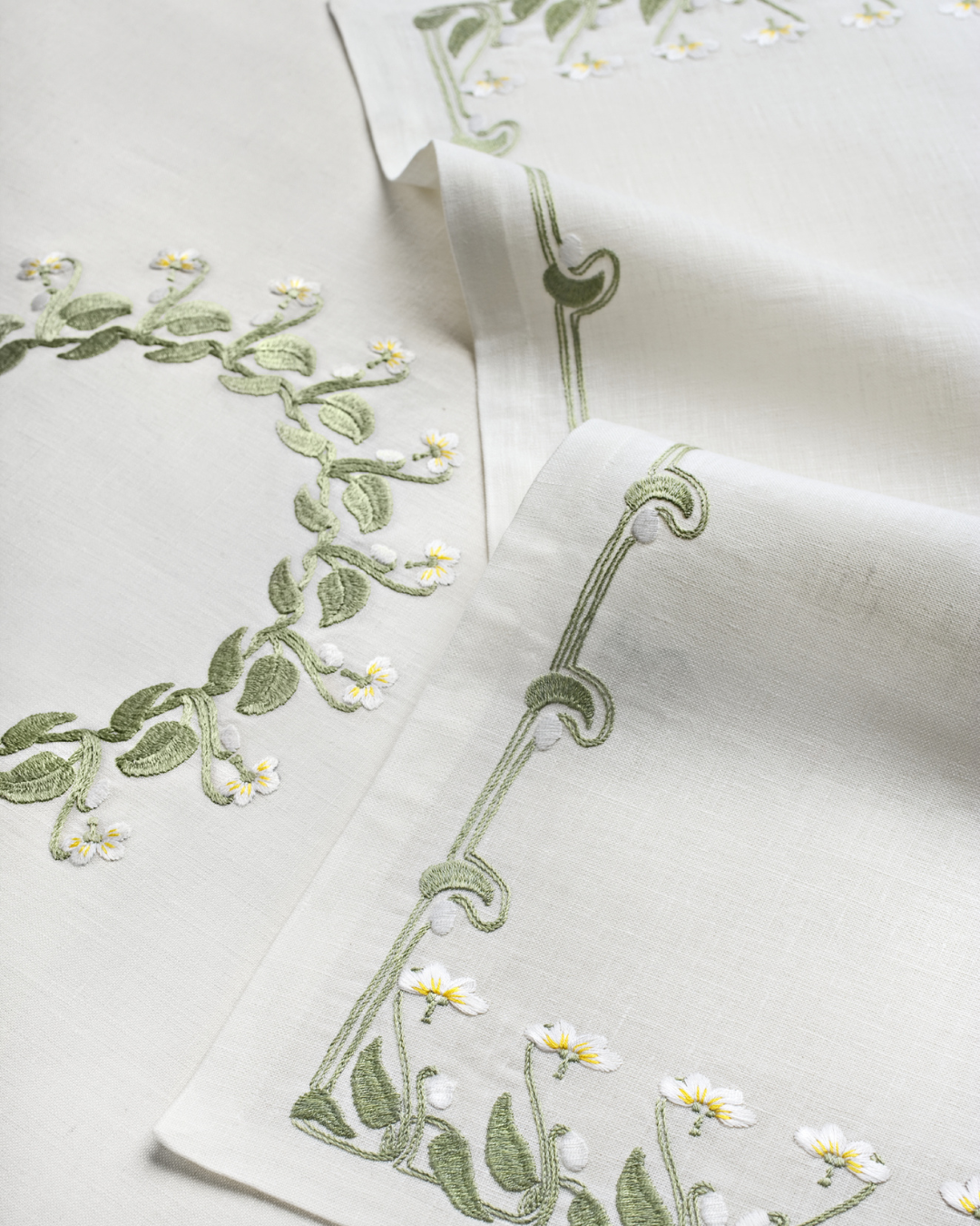 Broderade dukar/servett kan beställas som gör-det-själv paket.